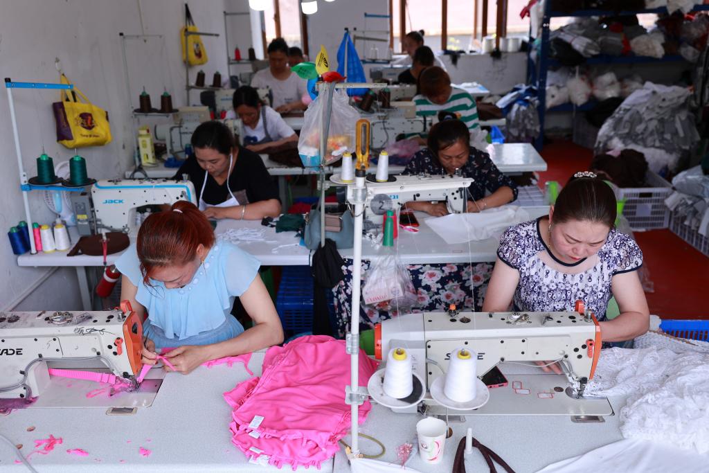 2023年7月18日,山東省無(wú)棣縣棣豐街道賈店村居民在微工廠(chǎng)內(nèi)忙碌。目前,棣豐街道已發(fā)展微工廠(chǎng)9家,帶動(dòng)就業(yè)400余人。新華社記者朱崢 攝