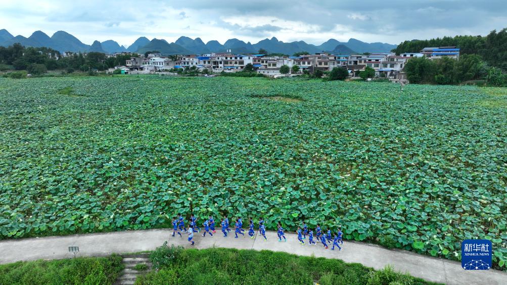 8月7日傍晚,孩子們?cè)诤商吝吪懿藉憻掦w能(無人機(jī)照片)。