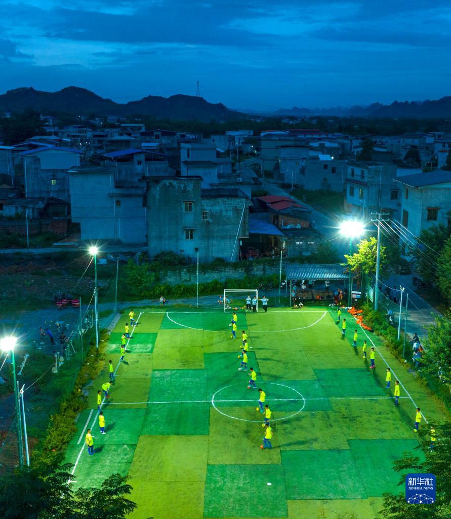 平地屯是位于廣西柳州市柳江區(qū)穿山鎮(zhèn)的一個(gè)小山村。8月7日晚,為期近1個(gè)月的平地屯暑期公益足球夏令營(yíng)結(jié)束,一場(chǎng)匯報(bào)訓(xùn)練成果的足球?qū)官愒诖謇锏木G茵場(chǎng)上打響,吸引眾多村民觀賽。2020年,平地屯的村民組成義務(wù)勞動(dòng)隊(duì),為孩子們修建專用足球場(chǎng),社會(huì)愛心人士為他們捐贈(zèng)了人工草坪、球門、球場(chǎng)照明燈等設(shè)施,公益足球教練定期免費(fèi)為孩子們培訓(xùn),眾人聯(lián)合起來,給村里喜歡足球的孩子們點(diǎn)燃了綠茵夢(mèng)想。