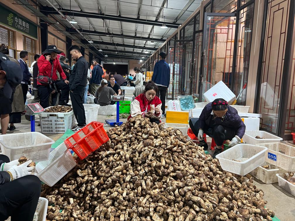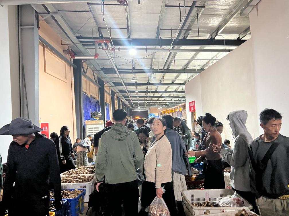 晚上11時(shí),記者走進(jìn)當(dāng)?shù)厮扇捉灰资袌?chǎng),看到客商云集,門店前滿是用松茸堆成的小山。雖已入夜,市場(chǎng)內(nèi)人聲鼎沸,商戶達(dá)瓦央宗熱情地拉住記者,推銷自家采摘的松茸。詢問得知,這段時(shí)間,她和家人每天凌晨3點(diǎn)半摸黑出門,沿著山道來到家附近的青杠林采摘新鮮松茸,然后來市場(chǎng)交易,有時(shí)一忙就要持續(xù)到深夜。“一個(gè)松茸季下來,家里能增加五六萬元的收入。”