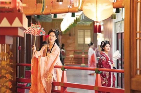 在遍布名勝古跡的西安市內(nèi),還有一座“平行時空里的長安”。走進(jìn)長安十二時辰主題街區(qū),游客不僅可以身著唐代服飾穿行在市井街區(qū),與游街花魁來個親密接觸,還能手握“開元通寶”代幣,到酒肆里買壺好酒,觀看歌舞。