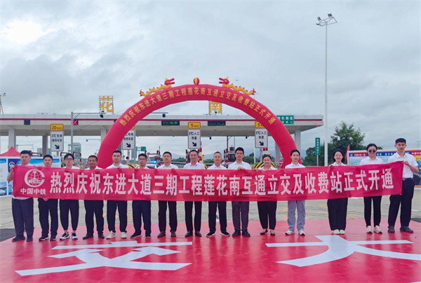10月8日,由中鐵一局一公司承建的肇慶東進(jìn)大道三期工程蓮花南互通立交及收費(fèi)站正式開通運(yùn)營(yíng)。肇慶市副市長(zhǎng)謝桂坤,中鐵一局副總經(jīng)理郭秀春,中鐵一局一公司總經(jīng)理韓勝等相關(guān)領(lǐng)導(dǎo)以及肇慶市政府有關(guān)部門、市交通集團(tuán)、設(shè)計(jì)、監(jiān)理和項(xiàng)目參建人員現(xiàn)場(chǎng)共同見證蓮花南互通立交及收費(fèi)站開通。