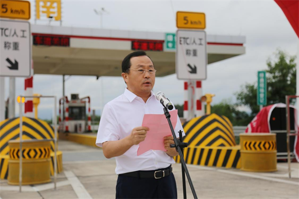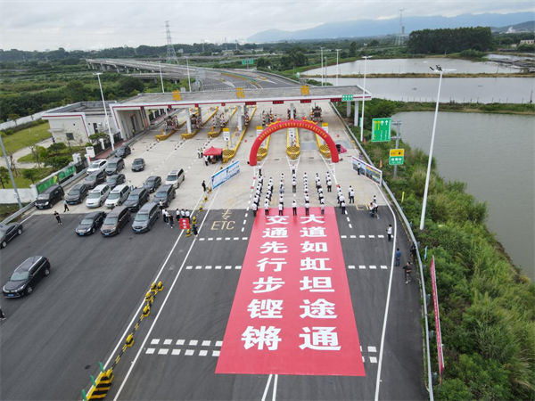 肇慶市副市長(zhǎng)謝桂坤宣布東進(jìn)大道三期工程蓮花南互通立交及收費(fèi)站正式開通