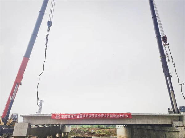 近日,肇慶新區(qū)臨港產業(yè)園波羅竇中橋首片預制箱梁架設完成,標志中鐵一局一公司承建的肇慶臨港產業(yè)園項目施工生產按下“快進鍵”。