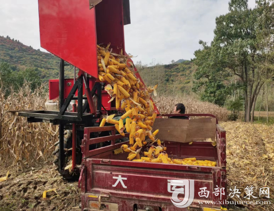 西部決策網(wǎng)訊(記者帥華鋒 通訊員 余小芹 余雅各 李三良)田疇沃野好“豐”光,遍地金黃糧滿倉。金秋時節(jié),甘肅隴南兩當(dāng)縣西坡鎮(zhèn)田間地頭的玉米喜獲豐收,村民們正利用晴好天氣采收玉米,忙得不亦樂乎,家家戶戶房前屋后堆滿了金黃的玉米,洋溢著豐收喜悅的笑臉與收獲的金黃色玉米交相輝映,勾勒出一幅動人的金秋豐收圖。