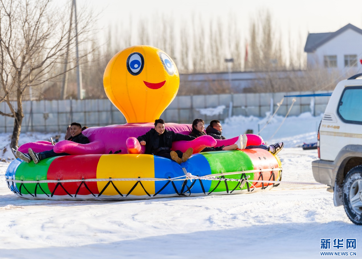 12月7日,游客在呼和浩特市玉泉區(qū)大庫(kù)倫村“冰雪大世界”內(nèi)體驗(yàn)雪地八爪魚(yú)項(xiàng)目。新華網(wǎng)發(fā)(丁根厚 攝)