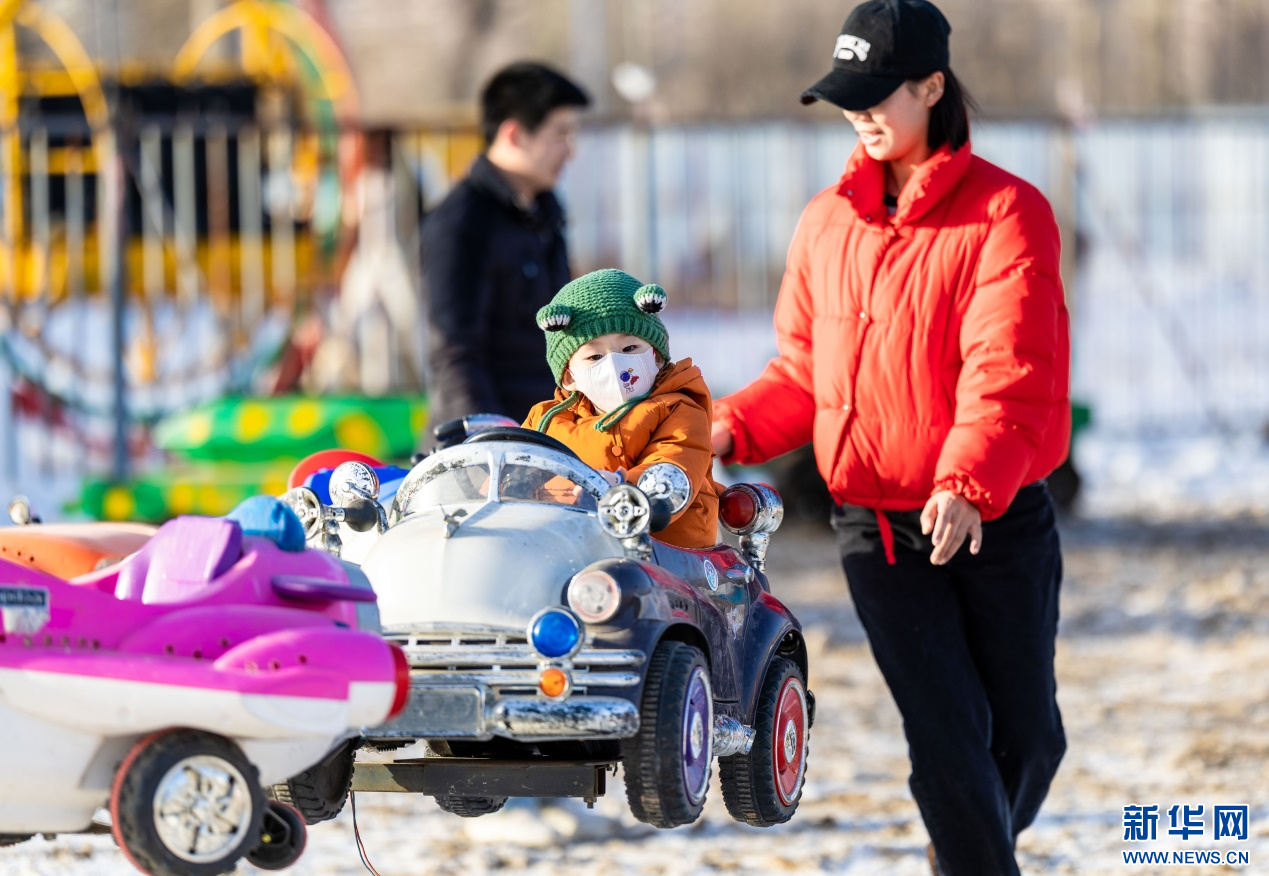12月7日,小朋友在呼和浩特市玉泉區(qū)大庫(kù)倫村“冰雪大世界”內(nèi)體驗(yàn)旋轉(zhuǎn)汽車(chē)項(xiàng)目。新華網(wǎng)發(fā)(丁根厚 攝)