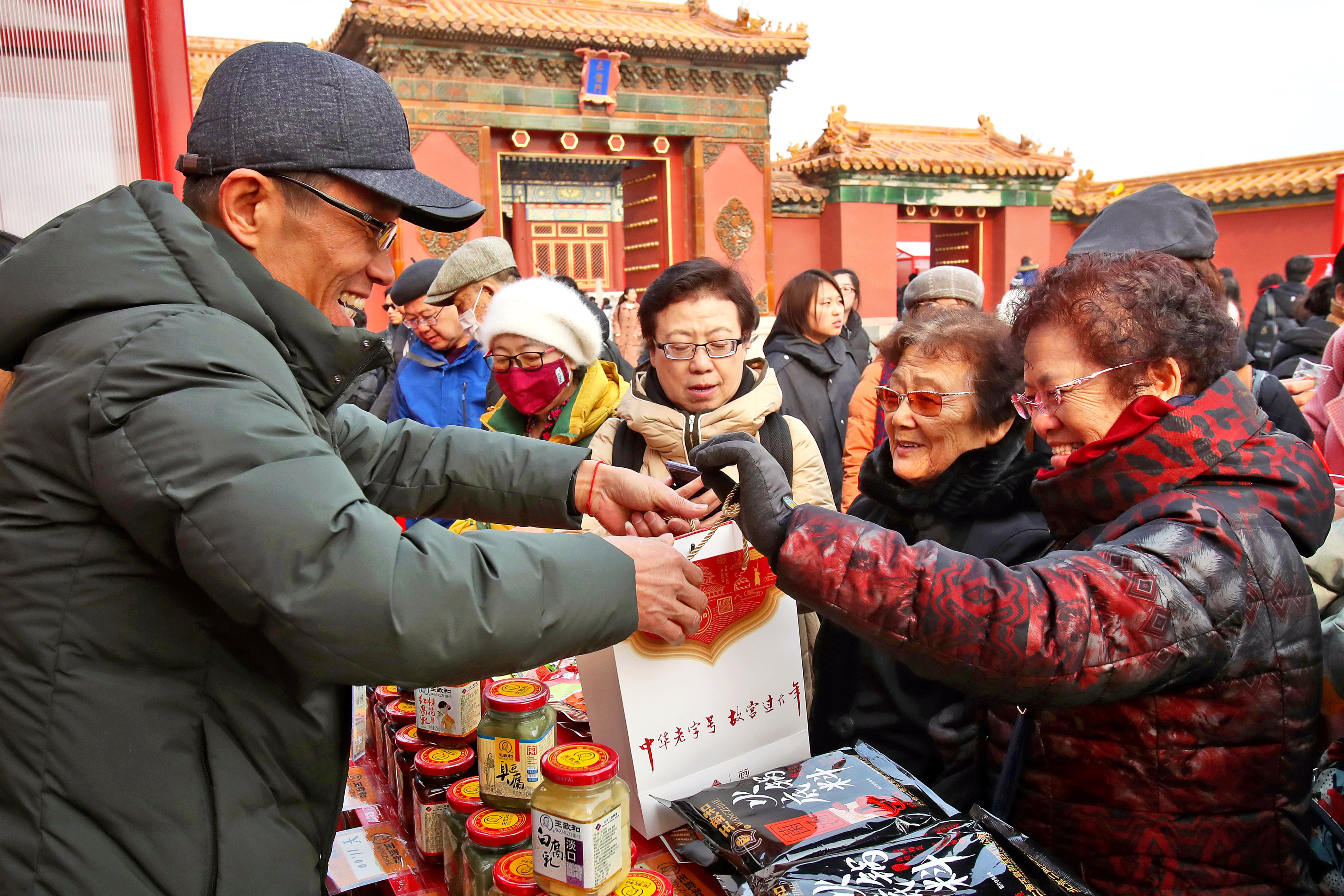 老年游客在故宮選購(gòu)旅游商品。