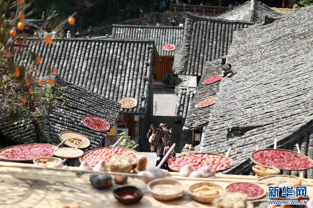 林坑村五彩斑斕的曬秋場景。新華網(wǎng)發(fā)