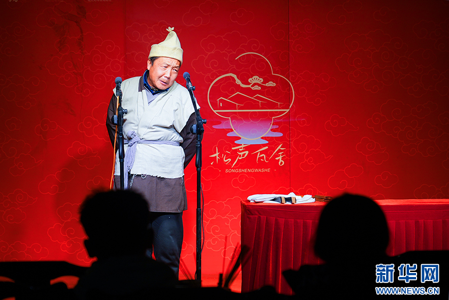 在西安永興坊——陜西非遺文化特色街區(qū),今年52歲的秦腔演員王波,為游客表演國家級非遺陜西地方曲藝“眉戶”經(jīng)典片段《張連賣布》。新華網(wǎng) 楊喜龍 攝