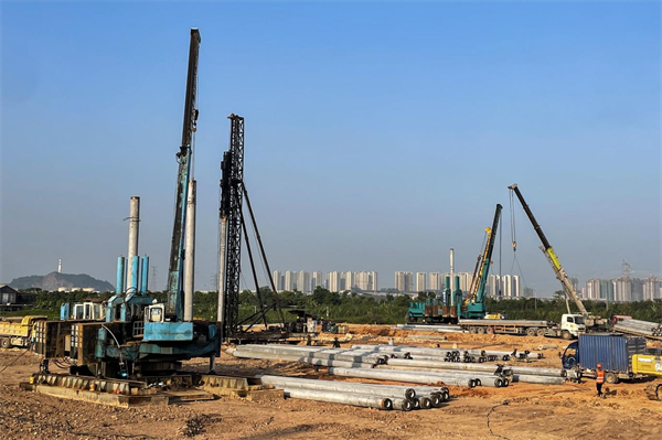 2022年11月30日南朗橫門(mén)污水處理廠工程開(kāi)工。施工展開(kāi)后,基坑開(kāi)挖這只“攔路虎”卻不期而遇。原本為放坡開(kāi)挖的施工遇到了厚層軟土層這種不良地質(zhì),而且平均厚度達(dá)18米。軟土多為淤泥層,呈流塑狀,分布連續(xù),且具有孔隙比大、強(qiáng)度低和壓縮性高等特性?;酉峦诘?米多時(shí),先是淤泥上涌,然后邊坡淤泥平推,7000多平方米范圍的生物反應(yīng)池基坑邊界被無(wú)形擴(kuò)大;坡度再放緩到1比8,淤泥推進(jìn)依然如舊……施工不得不如同蝸牛緩慢進(jìn)行。
