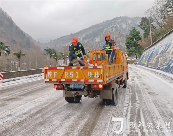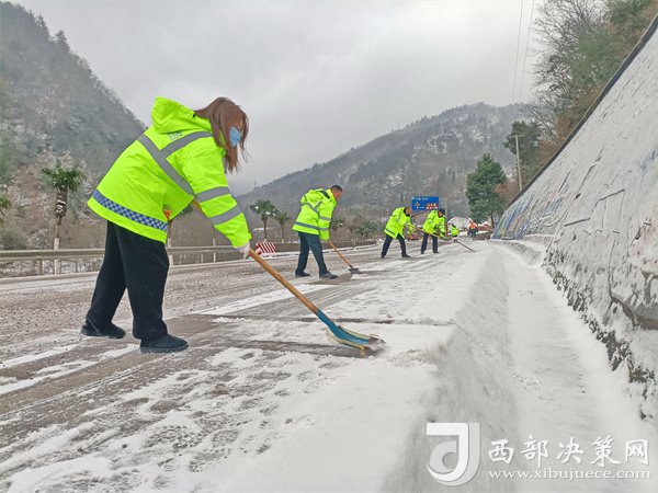 西部決策網(wǎng)訊 受強冷空氣影響,2月21日開始,寧強縣出現(xiàn)降雪天氣。根據(jù)氣象預警,寧強縣公路段提前組織好保暢人員和除雪機械,備好融雪劑、防滑料,隨時待命。雪情來臨后,寧強公路段以雪為令,聞雪而動,迅速啟動應急保暢預案,及時開展除雪保暢作業(yè),全力保障轄區(qū)108國道安全暢通。