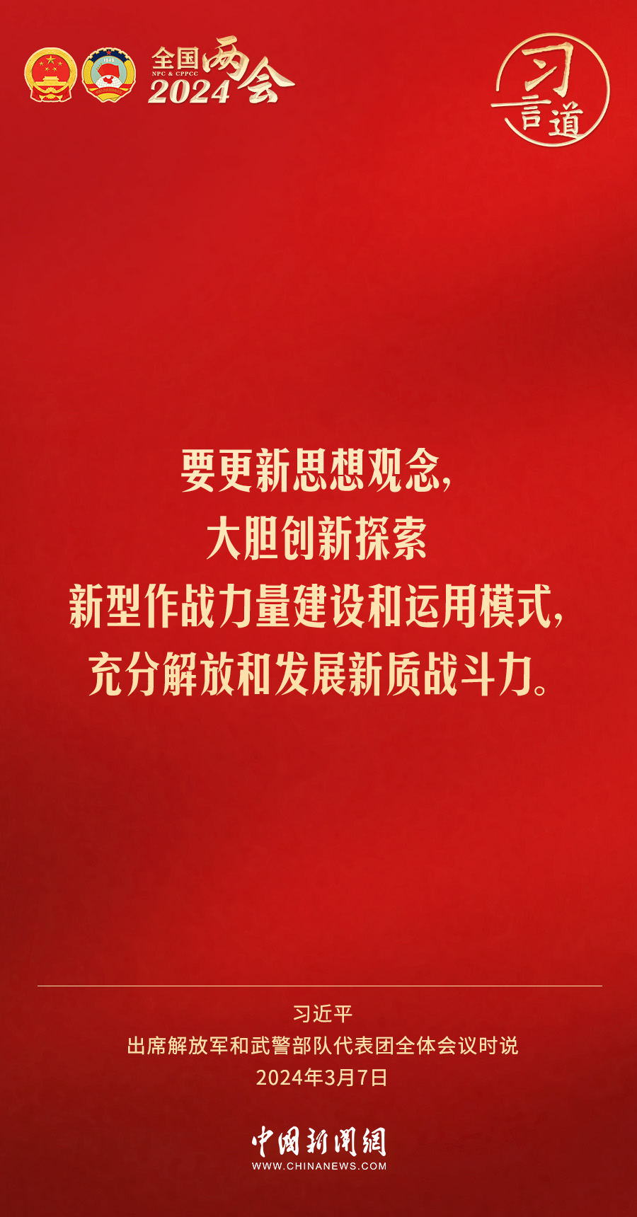 中共中央總書記、國(guó)家主席、中央軍委主席習(xí)近平7日下午出席十四屆全國(guó)人大二次會(huì)議解放軍和武警部隊(duì)代表團(tuán)全體會(huì)議,習(xí)近平強(qiáng)調(diào)——