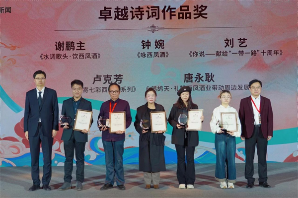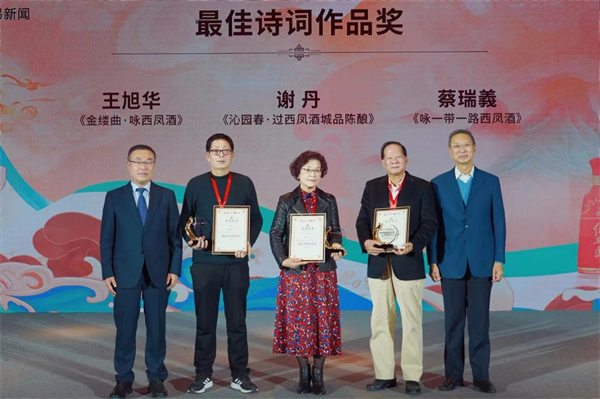 西部決策網(wǎng)訊(記者劉玉韓宗憲通訊員張?zhí)炝Ⅵ梦姆澹┰娋莆幕?,溫暖世界?月7日,以“詩酒飄香、悅享世界”為主題的“一帶一路”西鳳酒詩詞大會頒獎典禮在西安隆重舉行。中央電視臺原臺長,光明日報社原總編輯,第十屆中國文聯(lián)副主席胡占凡,著名作家、中國作家協(xié)會社聯(lián)部主任李曉東,中華詩詞學(xué)會常務(wù)副會長林峰,央視百家講壇主講人、鄭州大學(xué)文學(xué)院教授王士祥,中華詩詞學(xué)會評論部副主任,火箭軍工程大學(xué)原副校長杭中華,央視《中國詩詞大會》學(xué)術(shù)總負責(zé)人李定廣,中華詩詞學(xué)會顧問,陜西省詩詞學(xué)會會長孟建國,著名酒文化專家、山東社會科學(xué)院歷史所研究員王賽時,西北大學(xué)歷史學(xué)院副教授、中國文明史研究院研究員路中康。網(wǎng)易傳媒副總裁李淼,網(wǎng)易傳媒華北銷售中心副總經(jīng)理于洋。西鳳集團公司黨委書記、董事長、股份公司董事長張正,西鳳股份公司總經(jīng)理張周虎,西鳳集團公司黨委副書記、工會主席郭拴新,西鳳股份公司副總經(jīng)理周艷花、高亞蘭,西鳳酒股份有限公司總文化顧問高洪濤以及《人民日報》、新華社、新浪、網(wǎng)易、鳳凰網(wǎng)、《華爾街日報》、英國衛(wèi)報、中國經(jīng)營報、每日經(jīng)濟新聞、北京日報、陜西日報等50多家媒體代表,詩詞愛好者參加會議。新華直播、網(wǎng)易新聞、西鳳股份公眾號、抖音平臺對大會進行了現(xiàn)場直播。