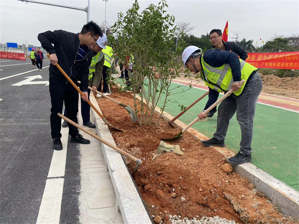“在工地上開展植樹活動,綠化周邊環(huán)境,提高周邊居民生活質(zhì)量,建設(shè)佛山有軌電車綠色示范工程,給南海區(qū)里水人民提供交上一份滿意答卷”該項目黨支部副書記吳俊榮說道。