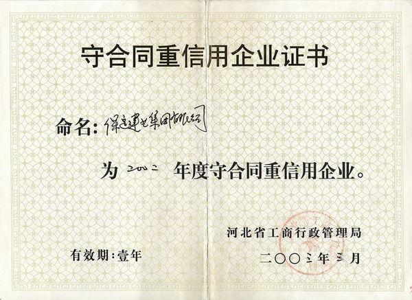 02年度省百?gòu)?qiáng)優(yōu)秀企業(yè)證書