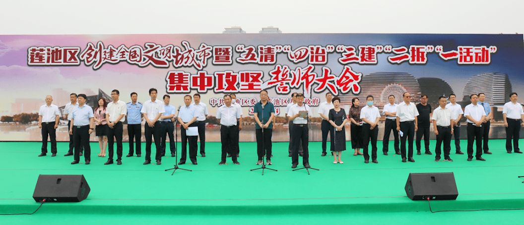 會議由區(qū)委副書記、區(qū)長、區(qū)創(chuàng)城工作指揮部指揮長劉曉鵬主持;區(qū)委黨委、宣傳部長、區(qū)創(chuàng)城工作指揮部副指揮長兼創(chuàng)城辦主任羅曉瑞向參會人員簡要通報了蓮池區(qū)創(chuàng)城工作進展情況并對下一步工作進行了安排;區(qū)委副書記、區(qū)創(chuàng)城工作指揮部常務副指揮長高國華宣讀了《保定市蓮池區(qū)開展“五清”“四治”“三建”“兩拆”“一活動”集中攻堅行動 推動“三整治五提升”文明城市創(chuàng)建實施方案》;區(qū)委書記、區(qū)創(chuàng)城工作指揮部政委董鳴鏑介紹了我市目前創(chuàng)城工作的開展情況,對本次行動要求作了具體闡述,并提出了更高的要求,希望全區(qū)上下團結一心,進一步弘揚“三有四干”的蓮池精神和“徹夜鏖戰(zhàn)、日夜兼程、晨起而作、只爭朝夕”的蓮池作風,共同為我市創(chuàng)建全國文明城市工作貢獻力量。