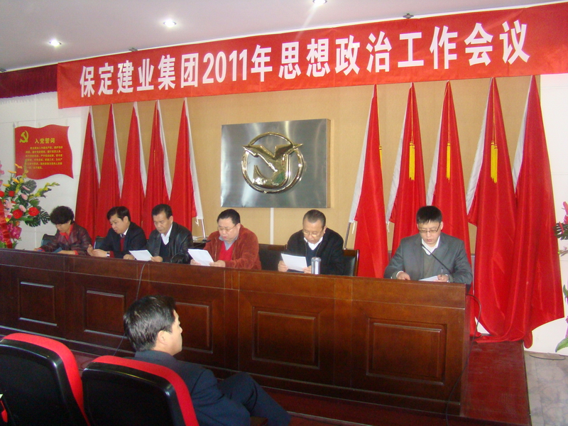 2011年3月8日,保定建業(yè)集團(tuán)有限公司2011年思想政治工作會(huì)議在莊嚴(yán)的國(guó)歌聲中拉開(kāi)了序幕,會(huì)議由黨委辦公室主任馬亞軍主持,集團(tuán)各公司黨、政、工、團(tuán)、婦、武裝、保衛(wèi)負(fù)責(zé)人參加會(huì)議。