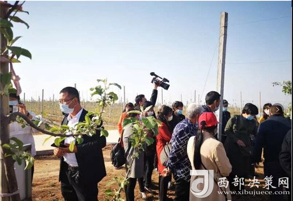 省級果樹栽培專家、融誠集團技術總監(jiān)徐仙飛、水口基地經理馬發(fā)旺先后就果樹種植、管理等相關情況向客人作了簡要介紹:融誠集團主要以蘋果種植輻射帶動果業(yè)全產業(yè)鏈,形成規(guī)模化經營,計劃栽植蘋果面積10萬畝,目前已栽植蘋果樹6萬畝,成型園和幼園各占一半。徐仙飛現場為客人講解示范了果樹修剪、施肥、春夏秋冬管理要點。他說,蘋果產業(yè)發(fā)展首先要有先進的理念,有了先進的理念就有了先進的栽培模式,有了先進的模式就有了先進的配套技術,從而就能減輕勞動力,就能省工省力,就有高品質的果實,并且優(yōu)果率極高,機械化利用率高等特點。